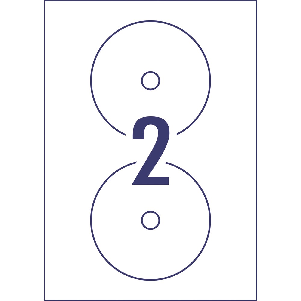Organise your media for easy retrieval or archiving. Guaranteed jam free printing on laser printers. Customise your labels with Avery Design and Print, available at averyproducts.com.au/print. Size: 117mm diameter. 50 labels, 25 sheets. 2 labels per sheet (2UP).