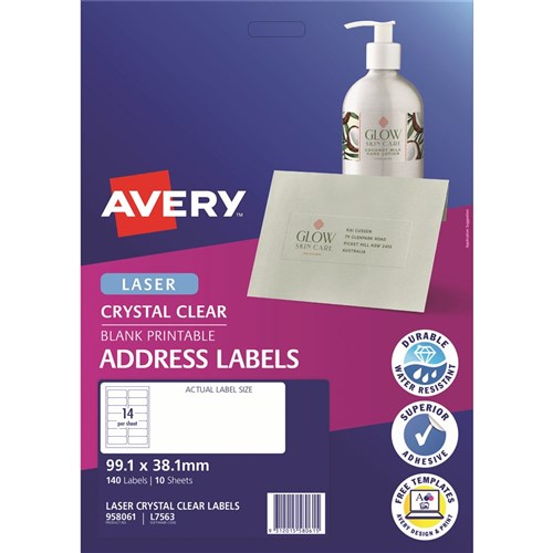 Avery Crystal Clear Laser Address Labels 99.1x38.1mm 14UP 140 Labels 10 Sheets