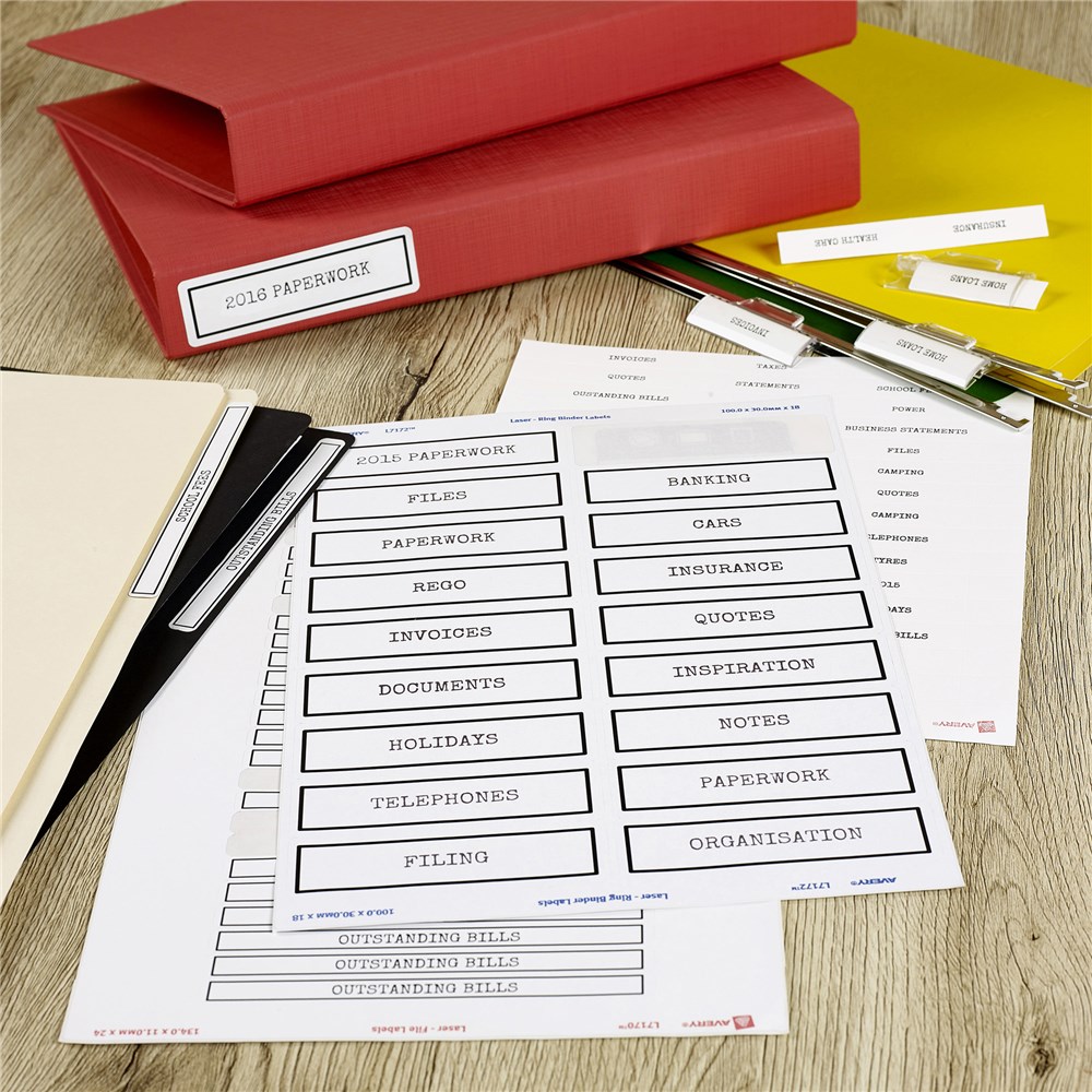 Avery Filing Laser & Inkjet Labels White L7172 100x30mm 18UP 450 Labels 25 Sheets