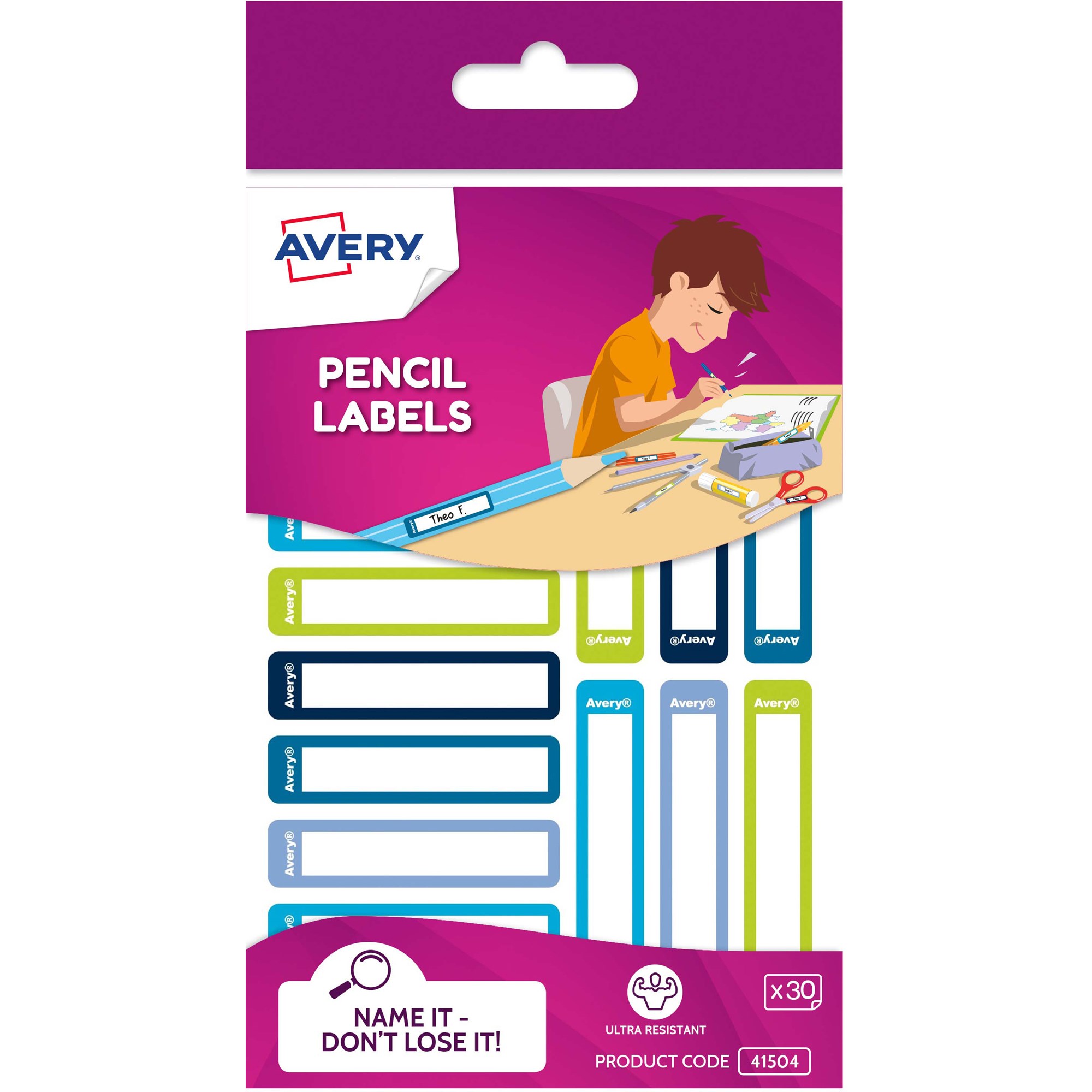 Avery Kids Pencil Labels 52 x 12mm Blue And Green 30 Labels