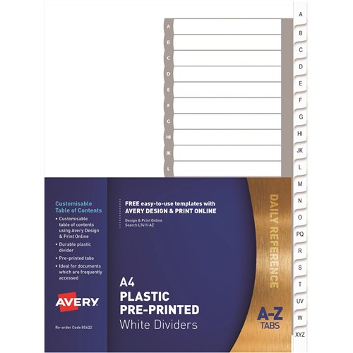 Avery L7411-Az Dividers Plastic A4 A-Z Index Tabs White