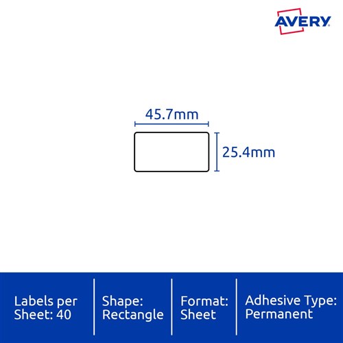 • Size: 45.7x25.4mm 400 labels, 10 sheets. 40 labels per sheet (40UP)