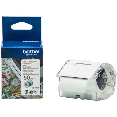 Compatible for use with the Brother VC-500W Label Printer. Continuous 50mm X 5m roll full colour paper roll. Water, tear and smudge resistant and has an adhesive backing that adheres to most surfaces. Can be used to create labels for files, folders, shelves, archive boxes, photos and more. This pack contains a single roll.