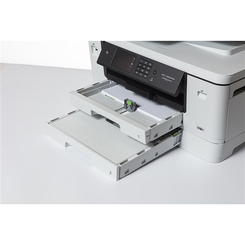 Print Speed: Up to 28.0 (Mono) / 28.0 (Colour) ipm. FPOT: 4.6 (Mono) / 4.4 (Colour) seconds. Paper capacity: Standard Tray - 250 sheets, Lower Tray - 250 sheets, Multi Purpose Tray - 100 sheets, Auto Document Feeder (ADF) - 50 Sheets. Print, scan, copy and fax. 2 sided printing, 2 sided scanning up to A3 printing and up to A3 scanning. 8.8cm Colour Touchscreen LCD. Two sided paper size: Ledger, Legal, Folio, Letter, A3, A4, A5, Mexico Legal, India Legal. Copy width: A3 (ADF/FB): 291mm, Ledger (ADF/FB): 273.4mm. Glass scanning width: 295mm. Scanning lenght: 429.8mm. Noise Level: 50.0dB(A). Wired or Wireless. Unit Dimensions: 576mm x 477mm x 375mm. 1 Year Manufacturer's Warranty.