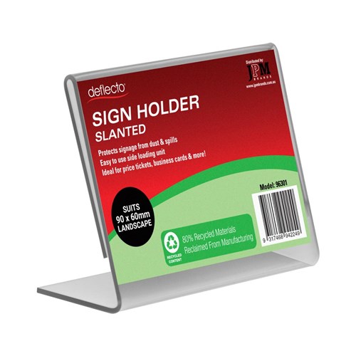 Perfect for displaying your business information and contact details in a professional manner. Slanted which makes for easy viewing and can be placed on your desk, table or in a reception area. Made from 80% recycled materials reclaimed from manufacturing process. The holder holds standard size business card and displays in a professional manner. Perfect also for when you want to use as slanted name/place holder for meetings, receptions etc.