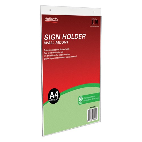 Deflecto Recycled Sign Holder Wall Mount A4 Portrait Clear