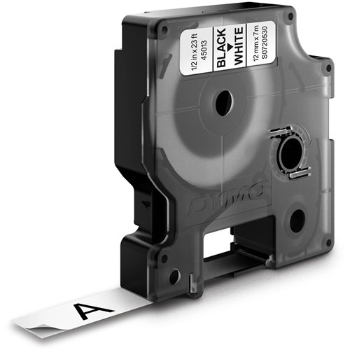 Suits Dymo LabelManager or LabelWriter. There are 10 rolls of 12 mm wide labels. Each roll is 12 mm wide, with 7 metres of tape included. The labels produced have black text on a white label. This pack contains 10 cassettes.