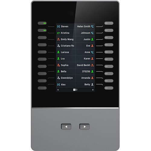 A backlit LCD extension module supported by the GRP2615, GRP2624, GRP2650, GRP2670 carrier-grade IP phones as well as and GXV3350 and GXV3450 IP video phones. 20 dual-colored extension keys and 2 arrow keys for page switching (allowing each GBX20 to support up to 40 contacts/extensions.). Connect up to 4 GBX20 modules to compatible Grandstream phones for a total of 160 contacts/extensions. BLF, call park /pick-up, speed-dial, presence, intercom, voice conferencing transfer/forward and more. 1 Year Manufacturer's Warranty.