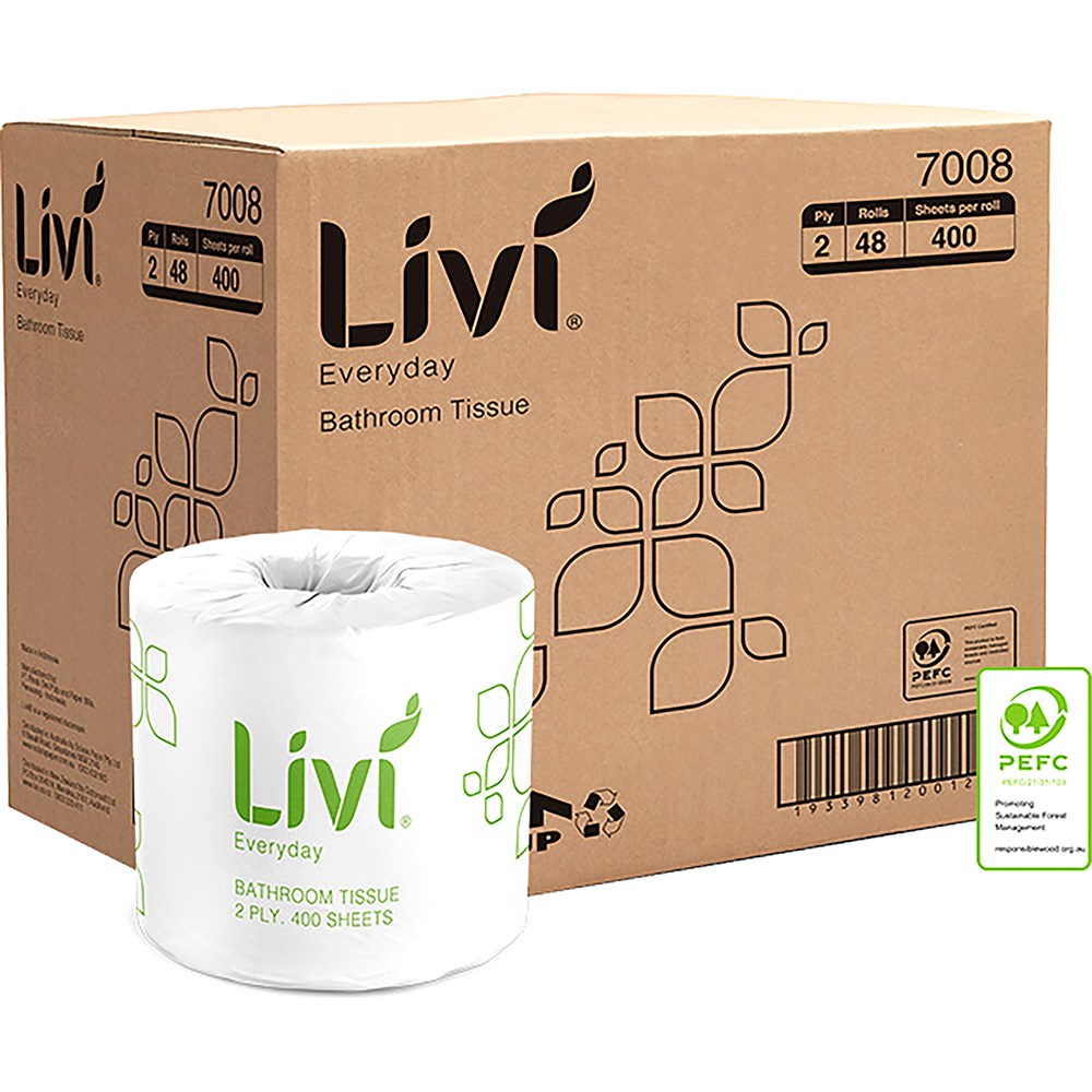 • The Livi Everyday is a 2ply, 400-sheet conventional toilet paper roll, individually wrapped to maintain presentation and optimal hygiene standards
