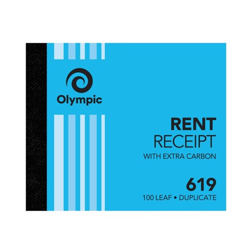 Olympic 619 Rent Receipt Book Carbon Duplicate 100 x 125mm 100 Leaf Blue