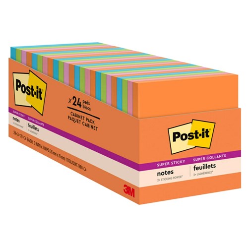 Post-It 654-24SSAU-CP Super Sticky Notes 76mmx76mm Energy Boost Pack of 24