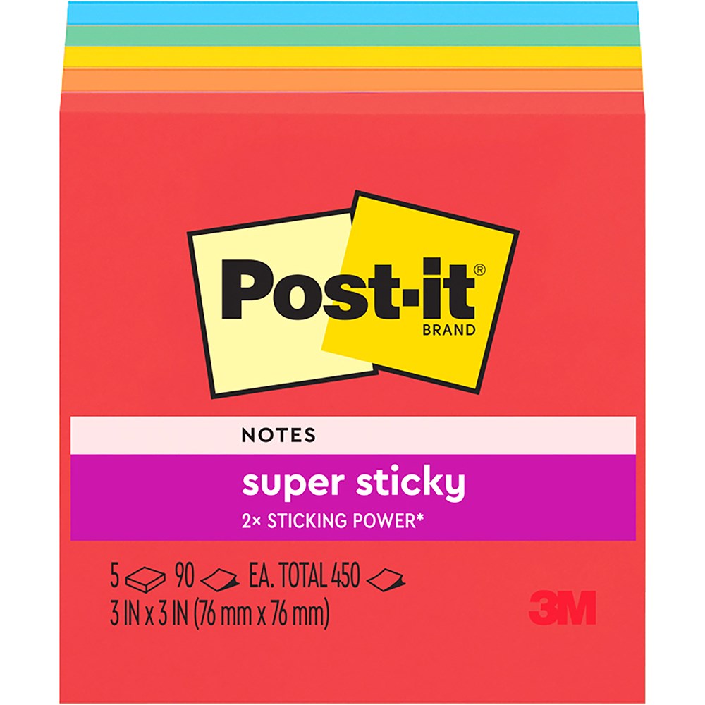 Post-It 654-5SSAN Super Sticky Notes 76mmx76mm Playful Primaries Pack of 5