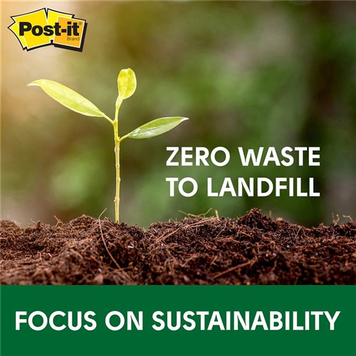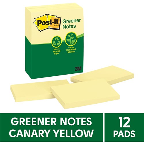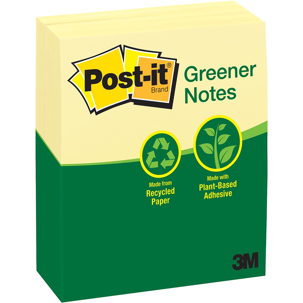Post-it® Greener Notes in 76mm x 127mm size are made from 100% recycled paper and a plant-based adhesive - which means no new trees were used. The plant material used to make the adhesive was replenished after harvesting.