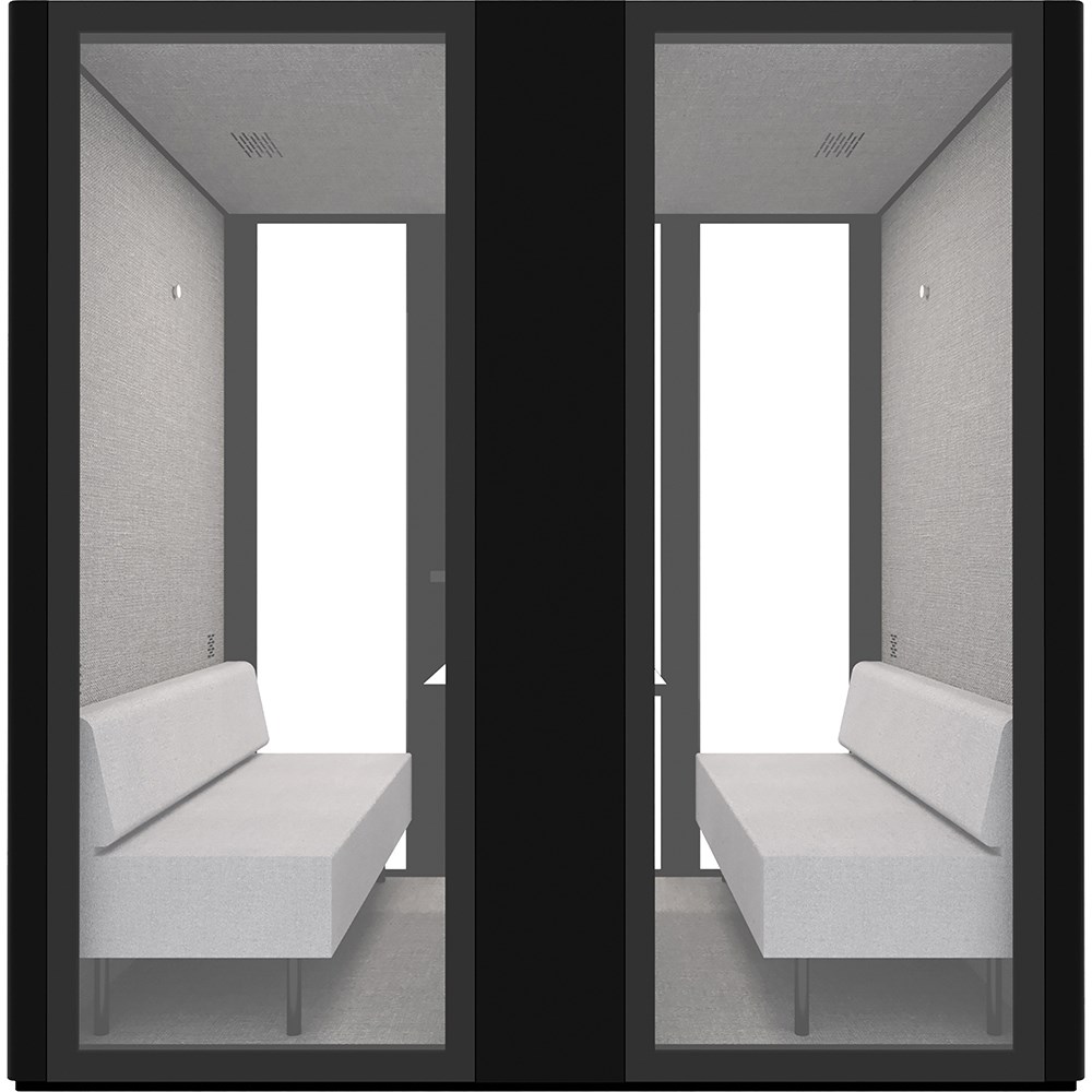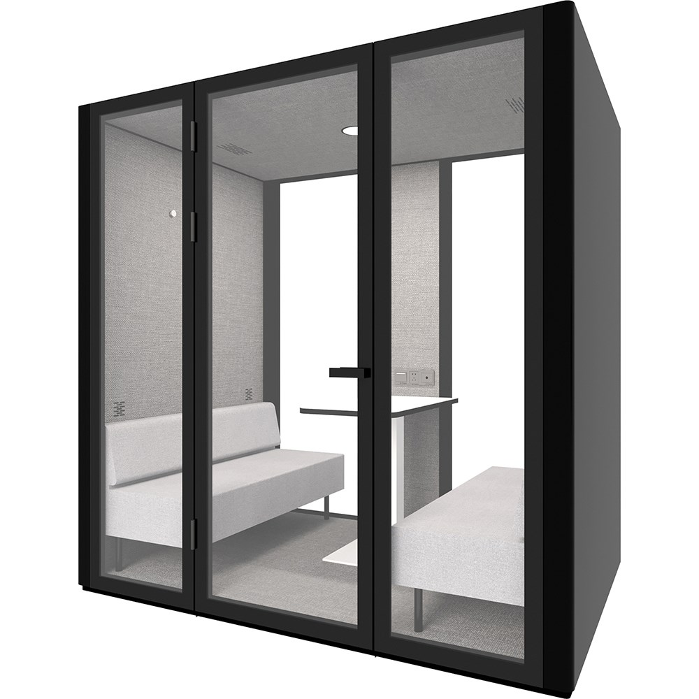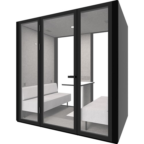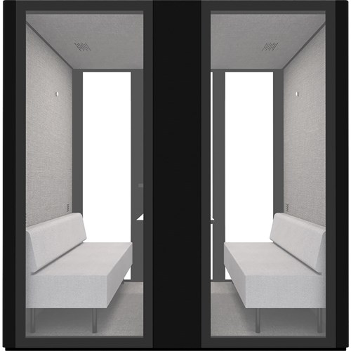 Speech level reduction of 30DB. Air replacement: every 1.8 minutes (total air flow: 2680L/min). Fitted with 1 x LED light (4w 400k). Comes with 4 x ventilation fans, controlled by a door triggered sensor. Fitted with heavy duty castors for easy movement for relocation. Overall Dimension: 2200W x 1200D x 2200mmH. Internal Dimension: 2100W x 930D x 2080mmH. Sofa Overall Size: 1070W x 580D x 680mmH each. 2 Sofas per Pod. Sofa seat depth: 450, Sofa seat height: 390mmH. Back rest height: 290mm. Table Dimension: 700W x 500D x 640Hmm with rectangular flat plate base underframe. Custom order colours and sizes are also available with an 8-10 weeks lead time. 5 Years Manufacturer's Warranty. Delivery, installation and assembly charges may apply to furniture. Please enquire to confirm.
