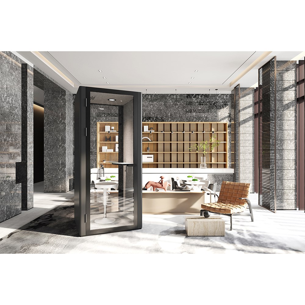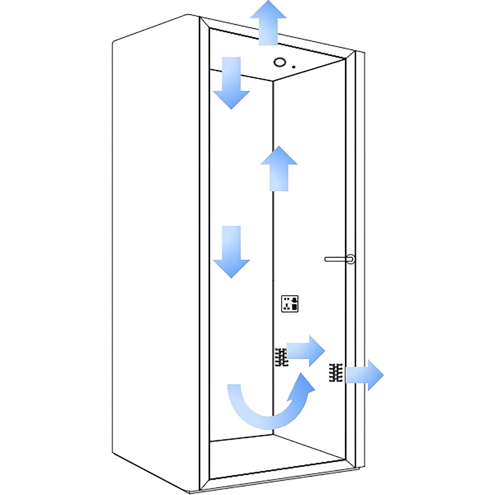 Speech level reduction of 30DB. Air replacement: every 1.2 minutes (total air flow: 1340L/min). Fitted with 1 x LED light (4w 400k). Comes with 2 x ventilation fans, controlled by a door triggered sensor. Fitted with heavy duty castors for easy movement for relocation. Overall Dimension: 1030W x 1030D x 2200mmH. Internal Dimension: 910W x 930D x 2080mmH. Doorway Width: 840mm. Wall Mounted Table Dimension: 500W x 280-200D (tapered) x 25mmT. Custom order colours and sizes are also available with an 8-10 weeks lead time. 5 Years Manufacturer's Warranty. Delivery, installation and assembly charges may apply to furniture. Please enquire to confirm.