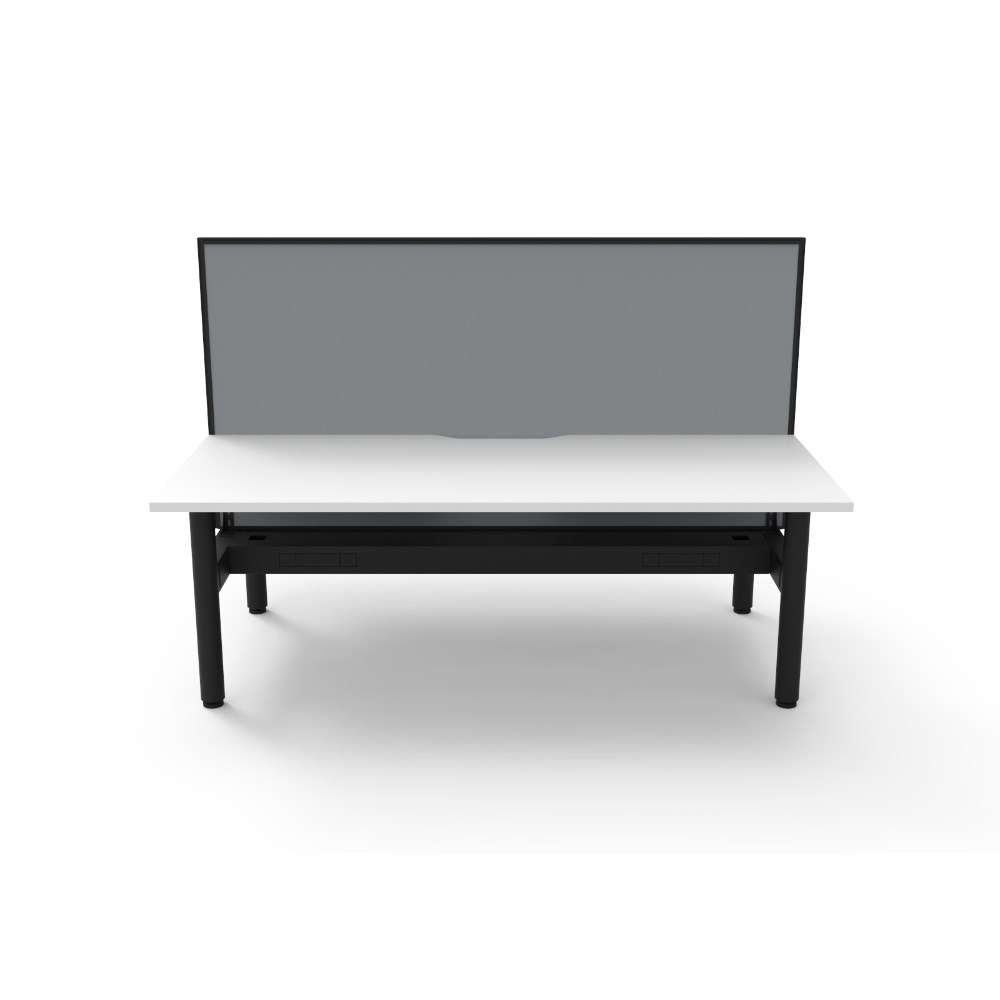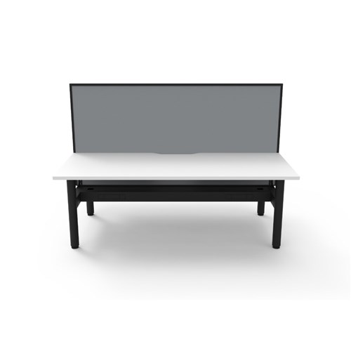 Natural White top Black Satin frame. Double sided workstation with screen and cable tray. Overall Dimensions: 1800W x 1500D x 1330mmH. Desk Per User Dimensions: 1800W x 750D x 730mmH. Height With Screen: 1330mm. E0 rated 25mm top with rigid edging and 50mm diameter scallop cut out to rear. Powder coated underframe. Adjustable levelling feet. Can be customised with optional accessories like cable management solutions and privacy screens. 10 Year Manufacturer's Warranty. Delivery, installation and assembly charges may apply to furniture. Please enquire to confirm.