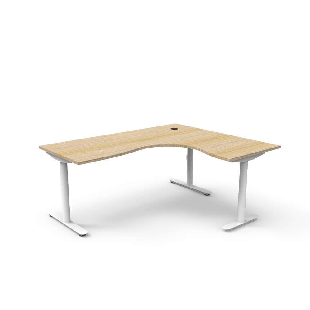 Natural Oak top White Satin frame. Dimensions: 1800W x 1500W x 750D x 730mmH. E0 rated 25mm top with rigid edging and 80mm diameter cable entry with cover. Powder coated underframe. Adjustable levelling feet. 10 Year Manufacturer's Warranty. Delivery, installation and assembly charges may apply to furniture. Please enquire to confirm.