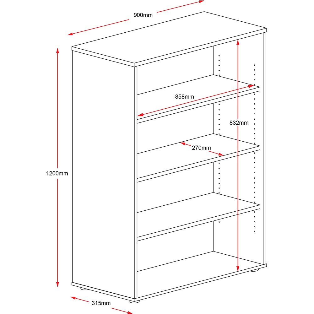 Rapidline Rapid Worker Bookcase 3 Shelves 900W x 315D x 1200mmH Oak And Ironstone