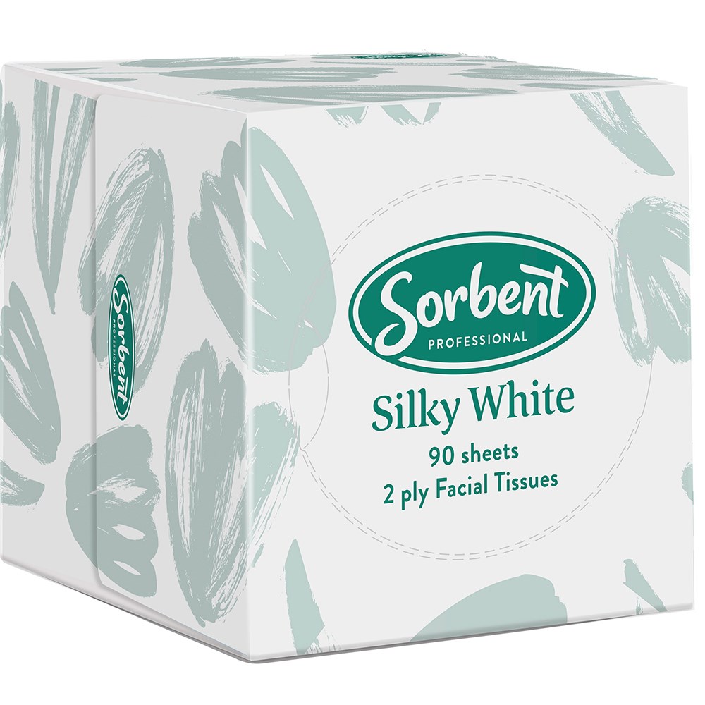 Sorbent Professional Silky White Facial Tissue 2 Ply 90 Sheets Cube