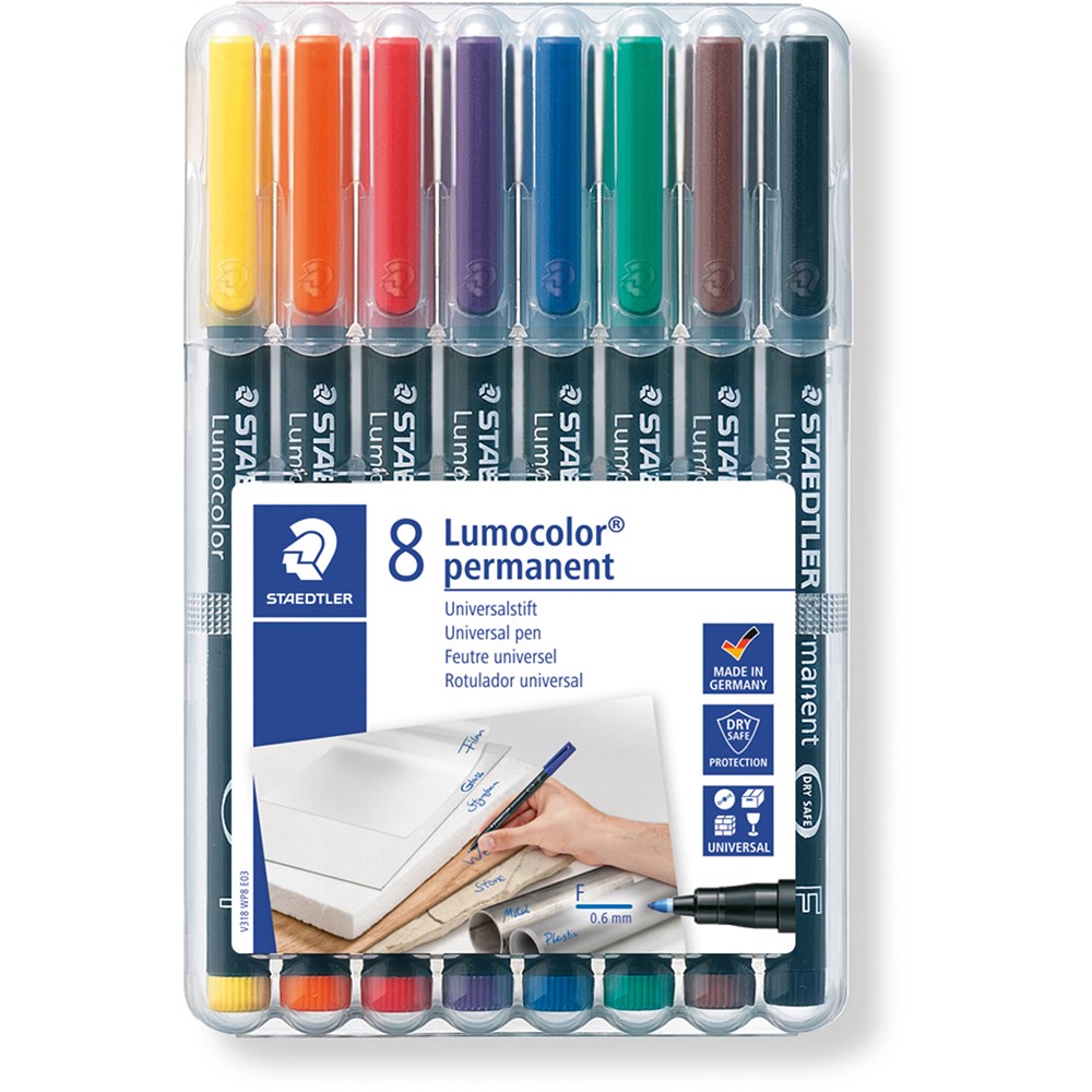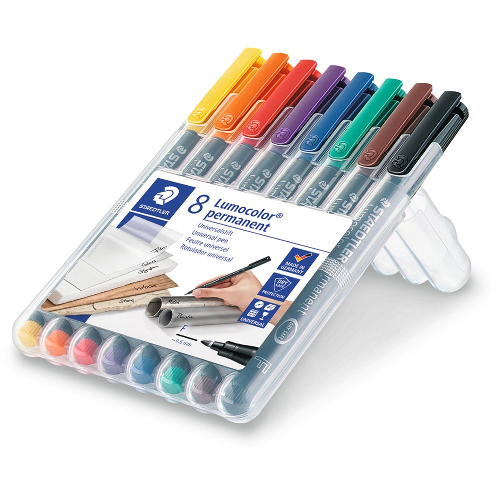Staedtler 318 Lumocolor Pen Permanent Fine 0.6mm Wallet of 8 Assorted