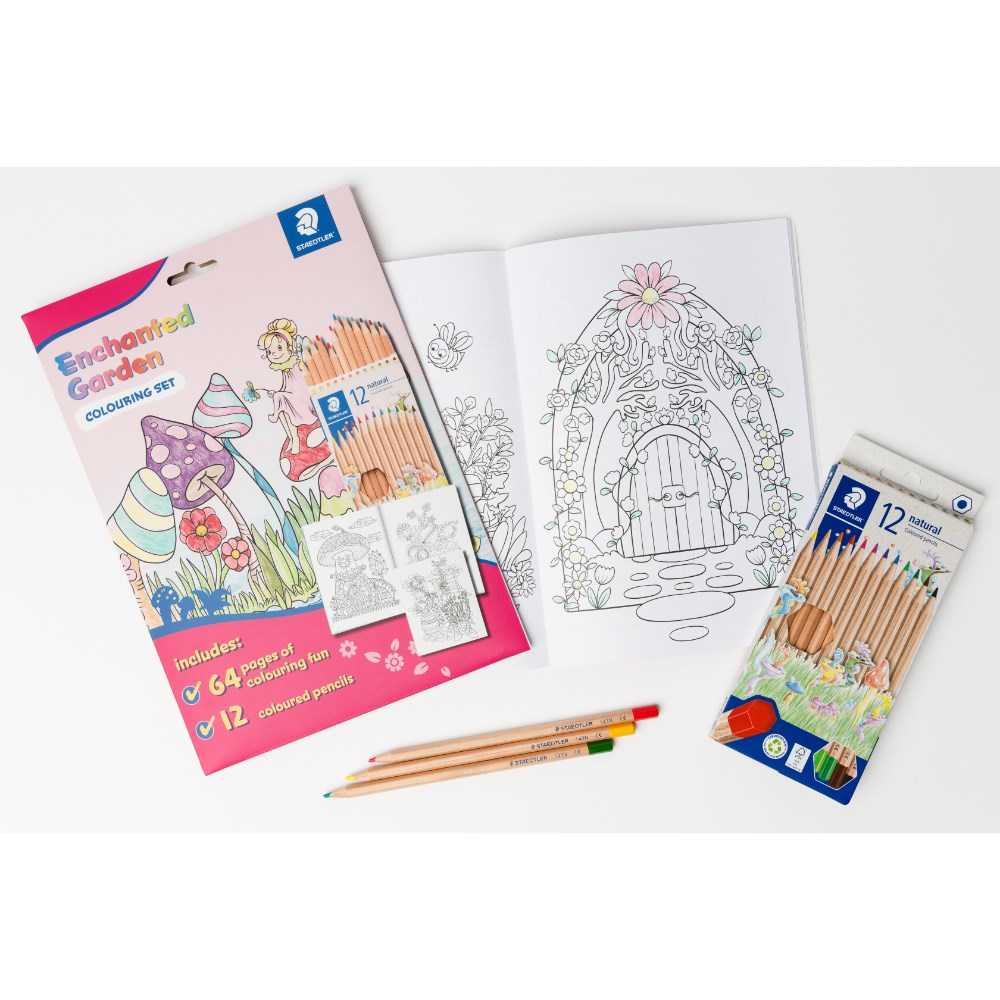 Contains Staedtler Natural Colour Pencils with a 64 page colouring book filled with great adventures. Includes 64 page colouring book and 12 x Pack coloured pencils. Recommended age: 3 years+. Colouring book size: B5 250mm x 176mm. Pencils use wood from certified, sustainably managed forests.