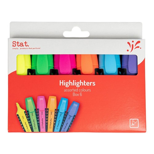 Reliable, Quality Water-Based Highlighters Perfect For Marking Important Information On Documents Bright Fluorescent And See-Through Colours Grab Attention Instantly 2-5mm Wedged Chisel Tip Enables You To Highlight Broad Or Fine Lines With Ease Fast-Drying And Comes With A Rubberised Grip For Comfort Comes In A Handy Wallet Of 6 Assorted Colours Include Pink, Orange Yellow, Green, Blue And Purple