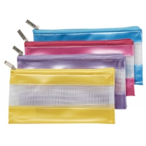 Durable PVC Mesh Construction Strong sewn zip closure Perfect for storing calculators, pens, pencils, general stationery and loose items