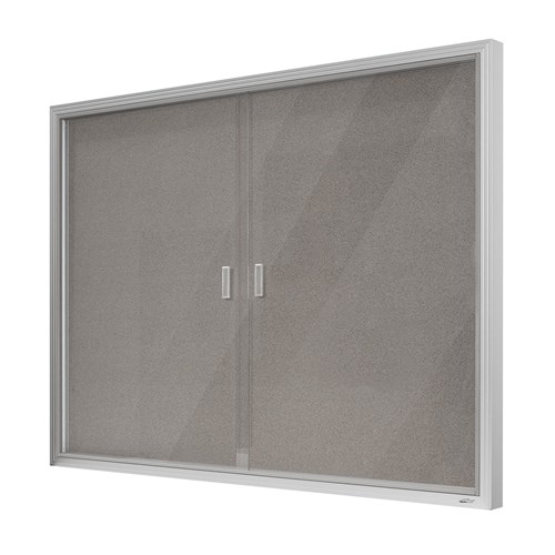 Visionchart Be Noticed Sliding 2 Door Notice Case 1525W x 48D x 915mmH Silver/Grey Felt